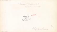 Verso, center (black ink stamp): "PHOTO BY / ERIKA / 160 EAST 48TH STREET / NEW YORK 17, N.Y."