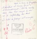 Verso, left top to bottom (pencil): long, double ended arrow with "reduine a 8cm de haul"