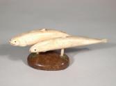 Adhesive label on bottom of base: 2 FISH / 2 PEG / BASE / 1956 / [sale price]; [vertical on left] SCULPTURE; [vertical on right] ESKIMO; in green ink on label: [illegible]