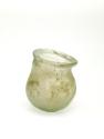 DescriptionEverted Rim; globular body; flattened on bottom; whole slightly tilted; handle rim to neck; transparent greenish glass