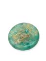 DescriptionGreenish blue translucent glass. Flat disk with rounded edge.