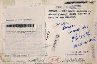 "U 27" on verso at upper left in pencil; "law enforcement" on verso at upper right in black marker; "File [arrow][pointing at a sticker] LAW ENFORCEMENT / PEOPLE DEAD & INJURED / (VICTIMS)" on verso at upper left in pencil; "Harlem - shop keeper murdered in / holdup (shot). small change is / still in the register" on verso at upper right in black marker; "87292" on verso at center in blue pen; "Gallic [?] / Crime #1 / 9 1/2" x 5 3/4 / HOLD IN P.E." on verso at right side in marker; "C2 85862" on verso at center in marker; "72-19-19-135A" on verso at lower right in pen; "[sideways] 368-C-79" on verso at right side in pencil; "[sideways] 86505KM" on verso at lower right side in pen; "72-19-19-35A" on verso at lower right corner in pencil; "[circled] 3A" on verso at lower center in red color pencil; ".13 .18" on verso at upper left under a sticker in pencil; "Book = 'Police Work' " on verso at lower left in pencil; "[sideways] 6000" on verso at lower left corner in pencil; "1972 Harlem, New York. USA" on verso at lower left corner in pencil.